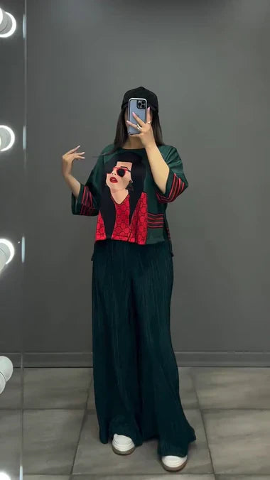 luxury 2 Pcs Silk Printed Co ord Set
